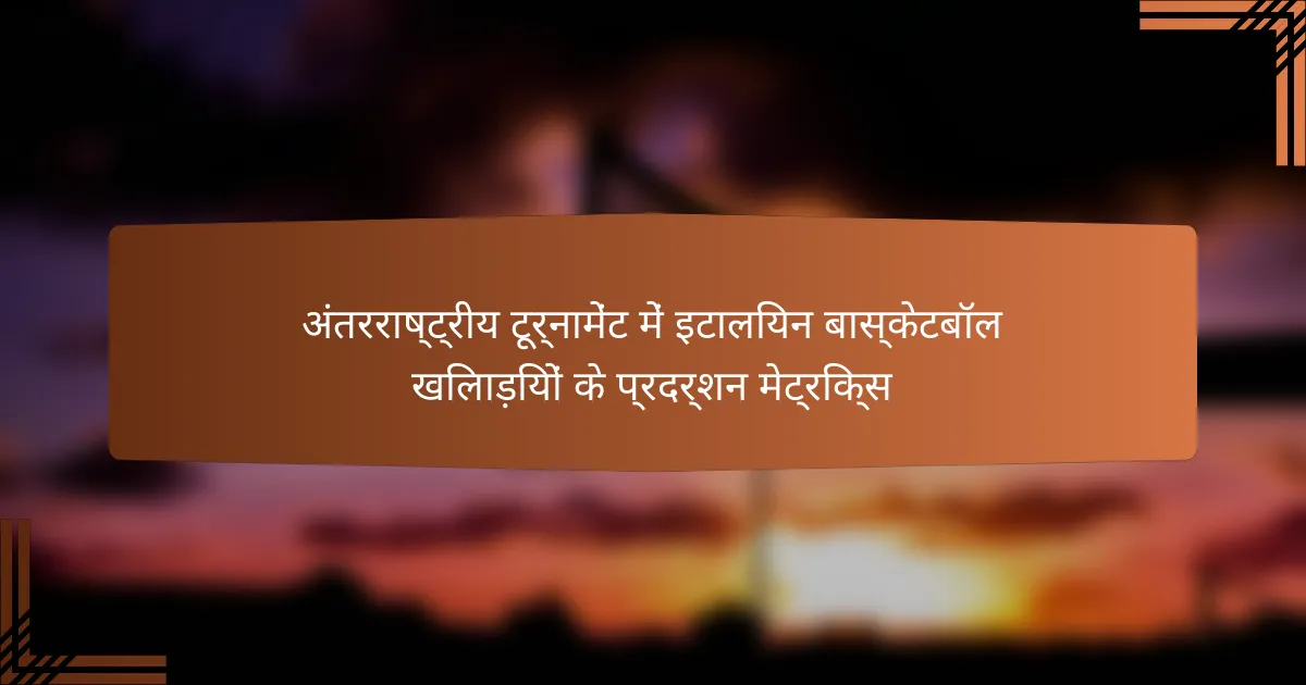 इंटरनेशनल टूर्नामेंट में इटालियन बास्केटबॉल खिलाड़ियों के लिए प्रमुख प्रदर्शन मेट्रिक्स क्या हैं?